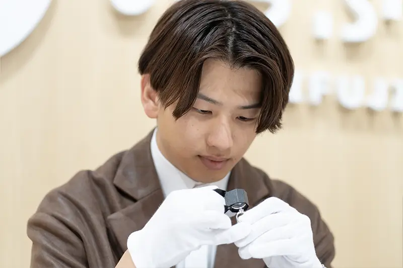 私の主な業務は、査定・買取です。また、査定だけでなく、買取後の商品の管理や店舗内の整理整頓、清掃など、店舗運営全般にも幅広く携わっています。